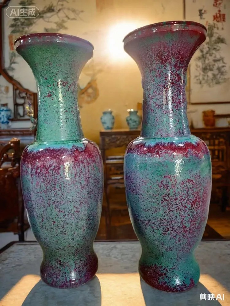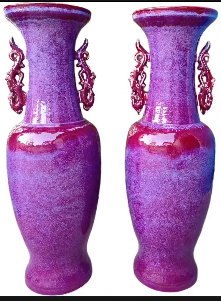 他不畏艰难,通过长期的实践探索与技术攻关,最终攻克了大型钧瓷制作的多项技术瓶颈。其创作的大型钧瓷花瓶高度可达1.1米至2.2米,甚至曾成功烧制出高达2.8米的《盘龙瓶》,轰动钧瓷界。‌‌ 老师制作的大鱼缸同样器型硕大、规制严谨。这些大型作品不仅形体端庄宏伟,而且釉色莹润,窑变色彩丰富瑰丽,实现了“大器”与“精工”、“形制”与“釉色”的完美统一。‌‌ 其作品在市场上备受追捧,价值显著,曾有藏家购得其大花瓶后转手获利颇丰,也有窑口以其大花缸参赛并荣获国家级金奖,这些故事在业内传为佳话,进一步确立了老师在大型钧瓷领域的领先地位。‌‌